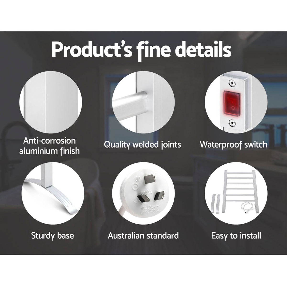 Imagine wrapping yourself up with a warm,dry and fluffy towel after a shower on a cold wintery day.This towel rail heat up as fast as 3 minutes,guaranteeing you with a warm towel or clothing every time.This is the easiest towel rail in the market to install due to its free standing style that does not require professional installation.Just plug in and ready to use.Made of anti-corrosion aluminium,it is a bold modern piece that will complement your bathroom.Designed to stay constantly at 40- 50degrees,giving you the warmness that you're after on every chilly day.