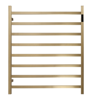 Premium Brushed Gold Heated Towel Rack With LED control- 8 Bars, Square Design, AU Standard, 1000x850mm Wide