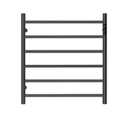 Matte Black Heated Towel Rack - 6 Bars, LED Control, Round Design (650x620mm)
