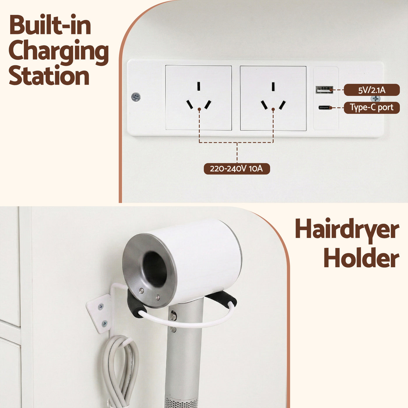 Upgrade your beauty corner with the Artiss LED Vanity Desk, featuring a Hollywood-style makeup mirror with LED bulbs. Customise your lighting with 3 colour modes and enjoy convenient access to your beauty tools with 11 spacious drawers and a hairdryer holder. The transparent tempered glass desktop combines functionality with style, while the built-in charging station ensures your devices are always powered. Designed with safety and comfort in mind, this vanity includes an anti-tip strap, smooth drawer runners, and a foam-padded stool. Perfect for bedrooms or professional use, this modern vanity is both practical and elegant.