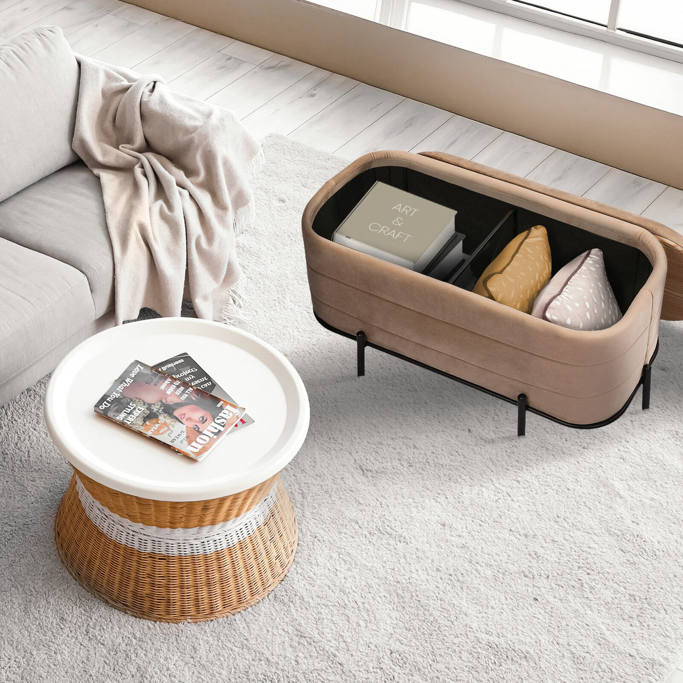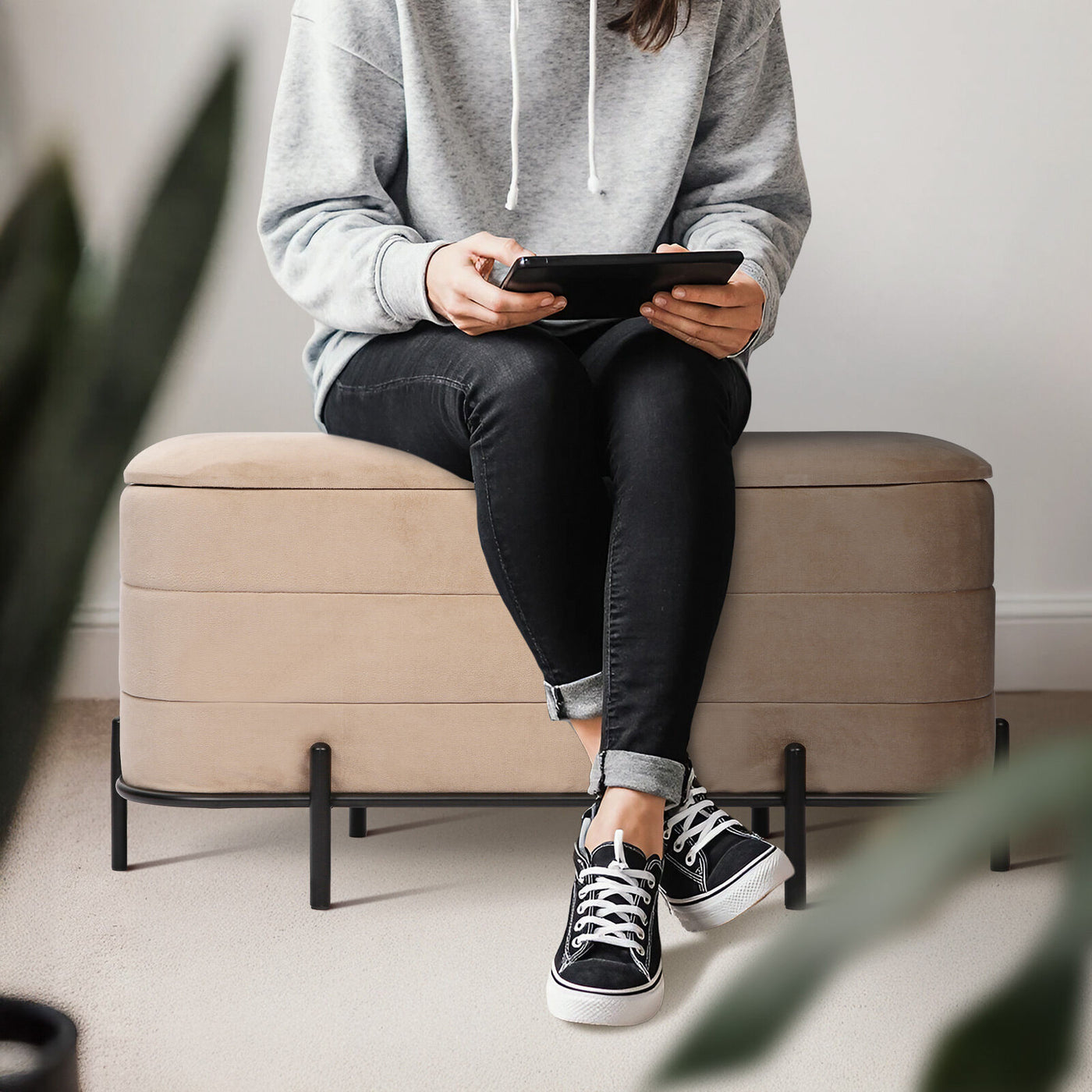 La Bella Coffee Table Storage Ottoman - Velvet Blanket Box Bench DEMI - CAMEL BEIGE