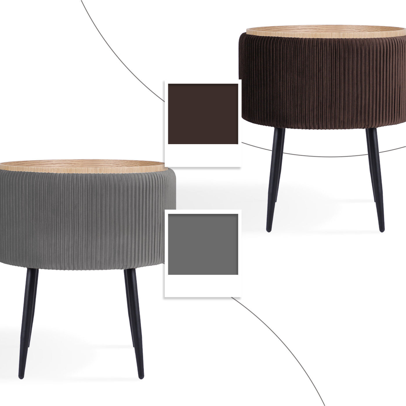 Side Table Storage Ottoman - Velvet Padded Stool Vanity Footstool CLEO GREY