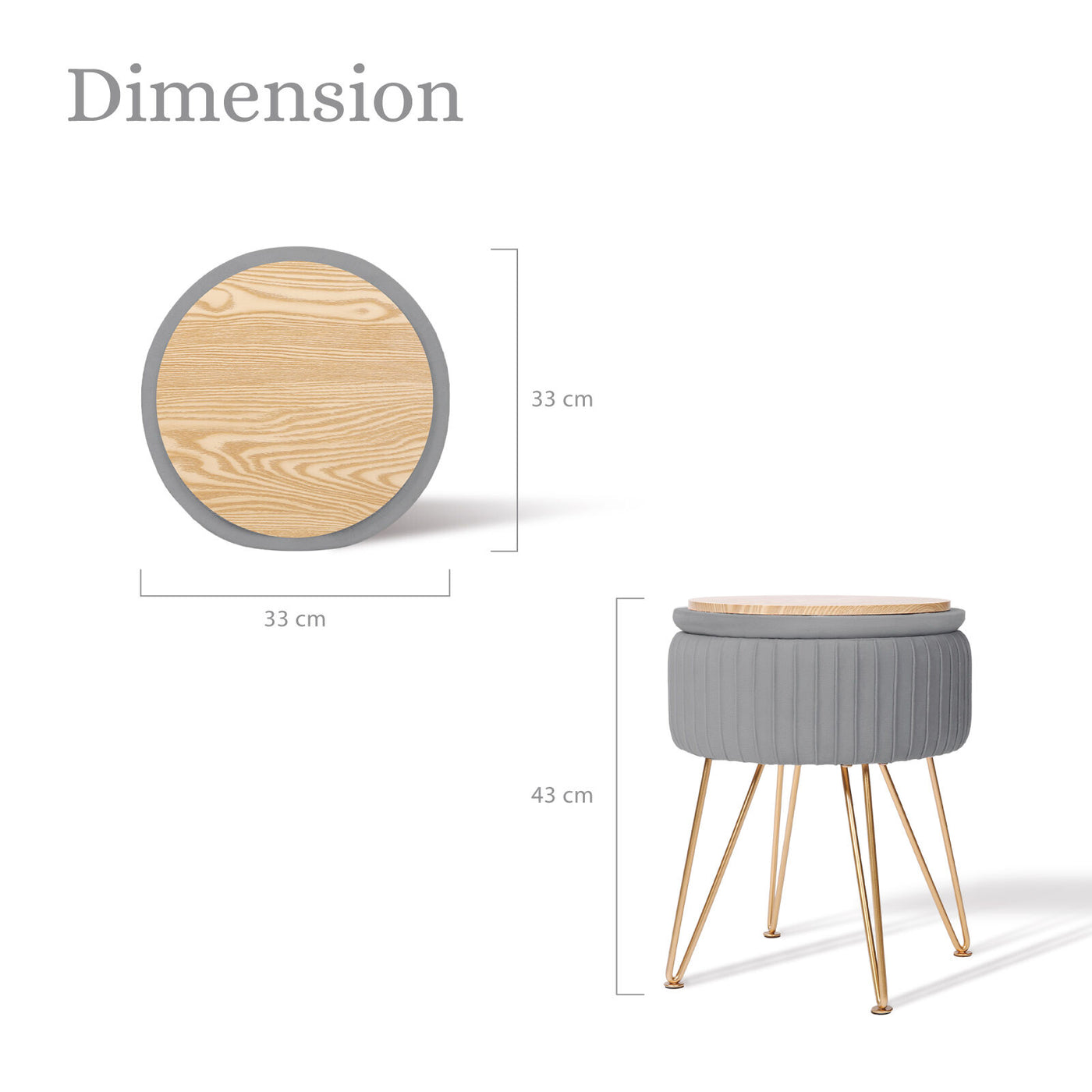 Side Table Storage Ottoman - Velvet Padded Stool Vanity Footstool REMY GREY