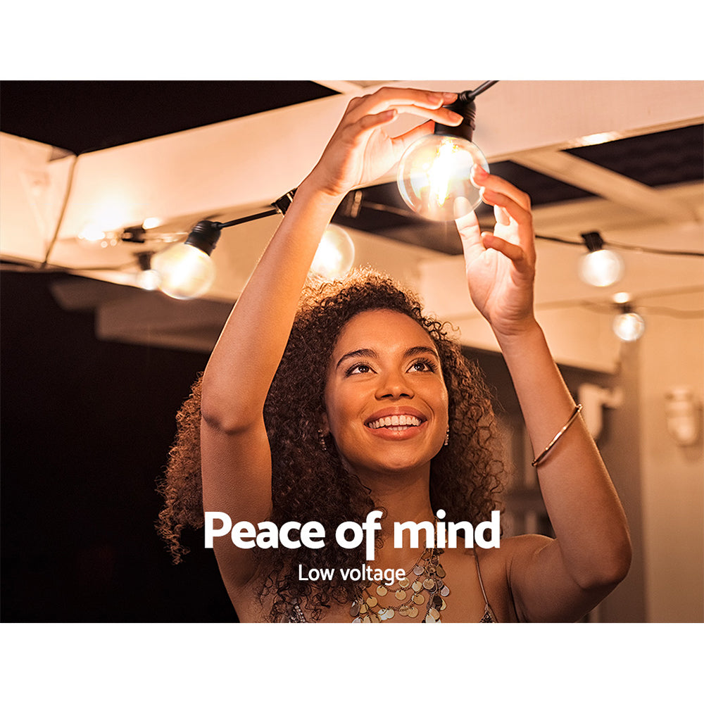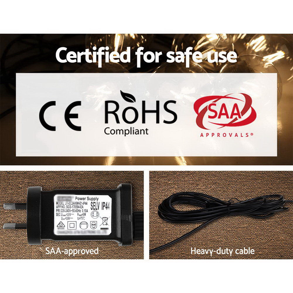 Our Jingle Jollys Festoon String Lights are great not only for wedding and birthday parties or special events, but also for creating a warm, inviting ambience with its bright and mellow glow. Suitable for both indoor and outdoor use, its IP44 rating means that it can be used in the rain and all weather conditions. Each bulb draws a very low voltage and is placed 90cm equally apart from each other throughout its 77m length for an even distribution of illumination and brightness. Not least, the each bulb has a 20,000 hours lifespan so that you can get to use the string lights for quite a while.