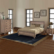 4 Pieces Bedroom Suite King Size Silver Brush in Acacia Wood Construction Bed, Bedside Table & Tallboy