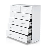 Practical and handsome, our Artiss 6-Drawer Tallboy is perfect for those looking for extra storage space for your home. Contemporary and simply designed, this beauty features a flawless melamine finish with elegant handles that will easily match your home décor. Made with high density particle board and coated metal runners, the tallboy works ever so smoothly with minimum hassle. Not least, it provides plenty of storage space with six generous-sized drawers for all your personal essentials and more.