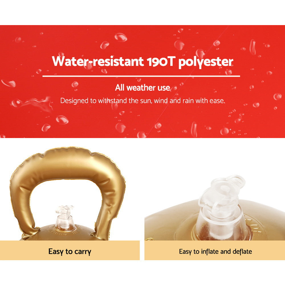 Add festive charm to your home with our Jingle Jolly Christmas Inflatable. Crafted with water-repellent and UV-resistant materials, it is perfect for indoor and outdoor use. The pump ensures effortless inflation. For quick storage, simply unzip and deflate. Create a magical holiday display effortlessly with this delightful inflatable centerpiece!