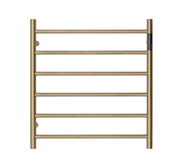 Premium Brushed Gold Heated Towel Rack with LED control- 6 Bars, Round Design, AU Standard, 650x620mm Wide